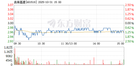 吉林高速盘中快速反弹,5分钟内涨幅超过2%,截至9点30分,报2.96元,成交560.34万元,换手率0.10%。