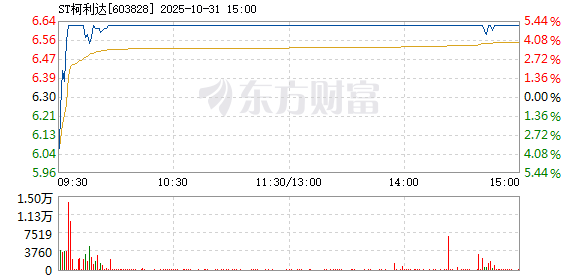以下是ST柯利达在北京时间10月31日09:35分盘口异动快照:10月31日9点35分,