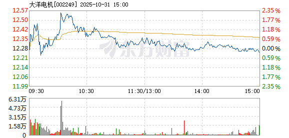 以下是大洋电机在北京时间10月31日09:42分盘口异动快照:10月31日,