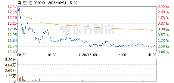 南京港盘中快速反弹,5分钟内涨幅超过2%,截至9点43分,报12.18元,成交2.40亿元,换手率4.03%。