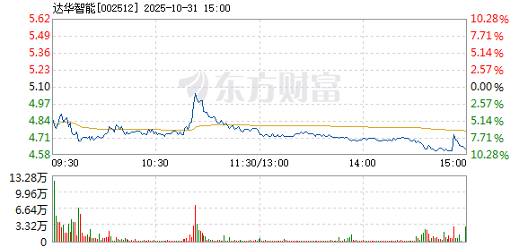 以下是达华智能在北京时间10月31日10:02分盘口异动快照:10月31日,