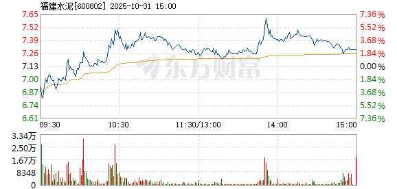 福建水泥10月31日盘中涨幅达5%