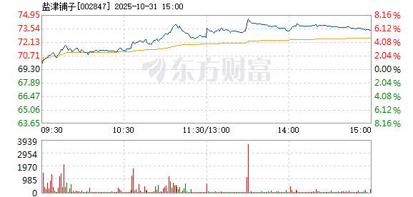 盘中涨幅达5%,截至10点59分,报72.83元,成交2.41亿元,换手率1.37%。