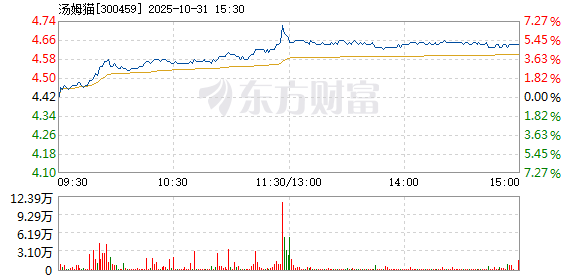 汤姆猫盘中快速上涨,5分钟内涨幅超过2%,截至11点26分,报4.72元,成交6.18亿元,换手率4.12%。