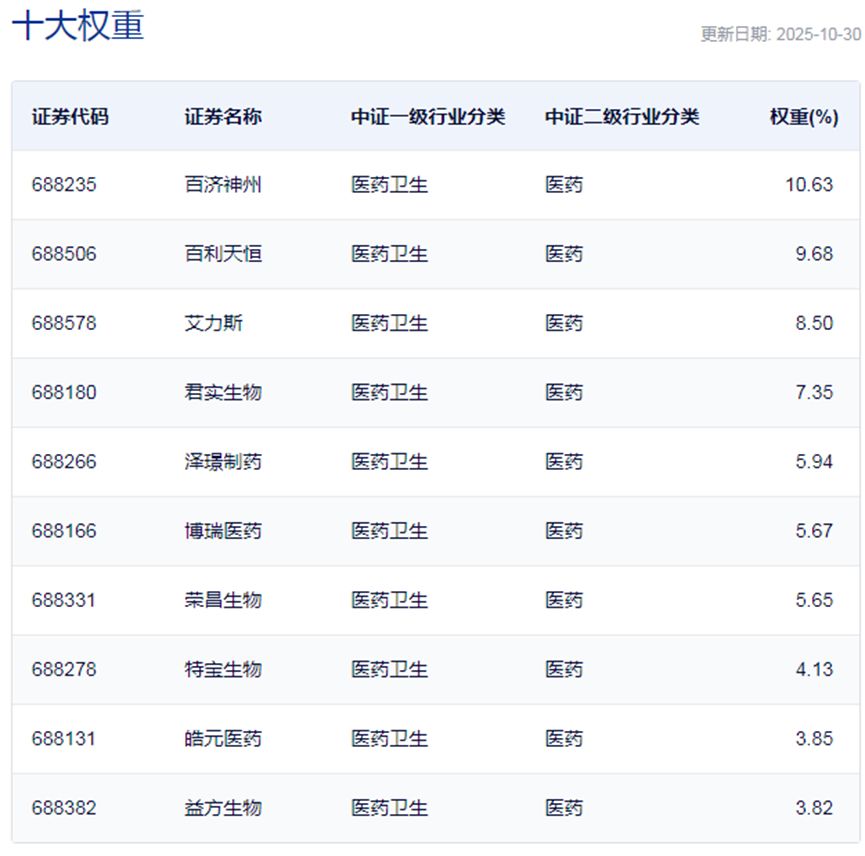 上证科创板创新药指数从科创板中精选30只业务涉及创新药的头部公司。指数权重分布相对分散,有效避免了个股风险过度集中的问题,同时能更好地捕捉不同阶段创新药企业的成长周期。