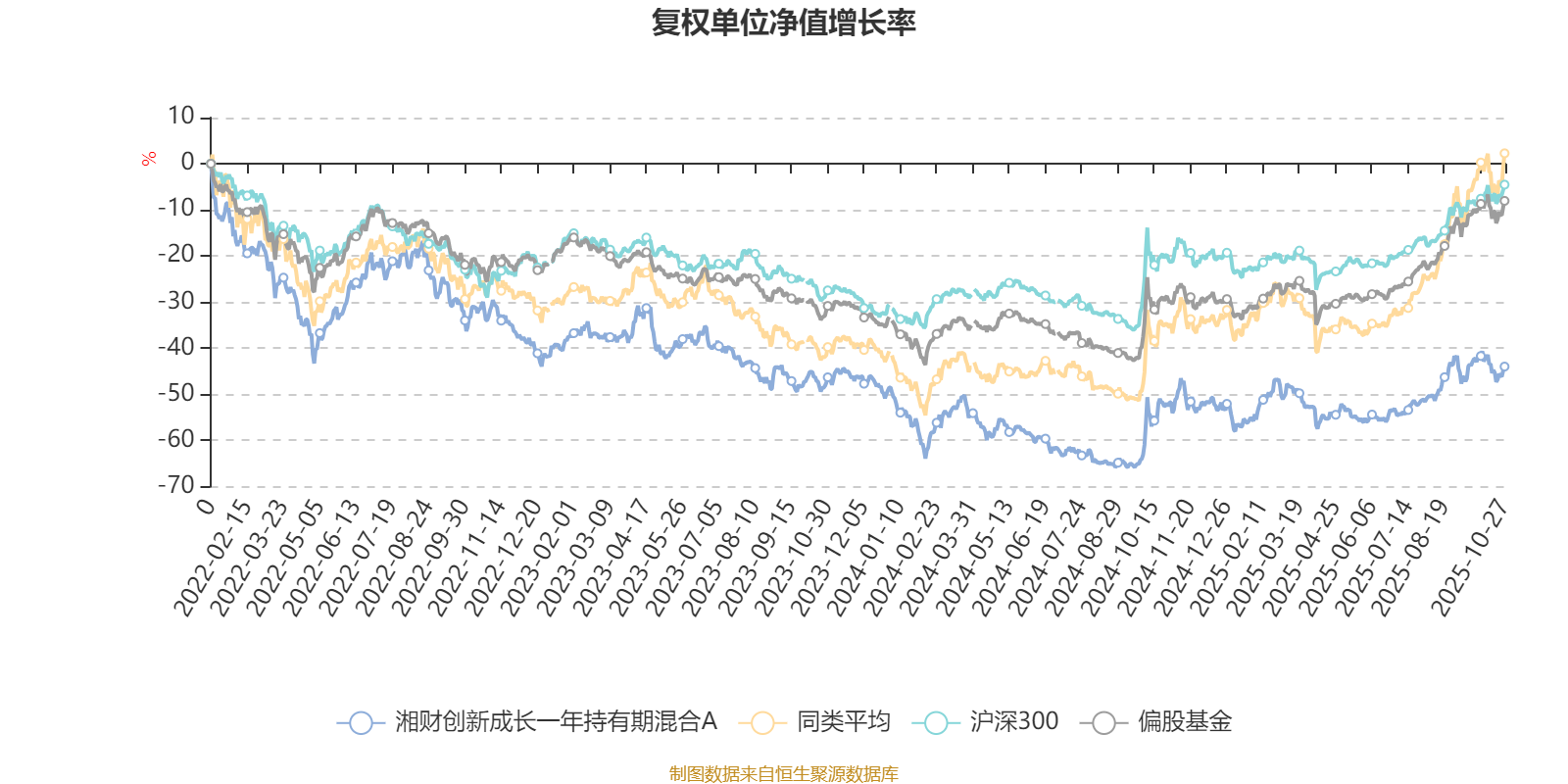 截至10月27日,湘财创新成长一年持有期混合A近三个月复权单位净值增长率为15.37%,位于同类可比基金200/229;近半年复权单位净值增长率为22.95%,位于同类可比基金213/229;近一年复权单位净值增长率为17.76%,位于同类可比基金204/213;近三年复权单位净值增长率为-17.68%,位于同类可比基金157/158。