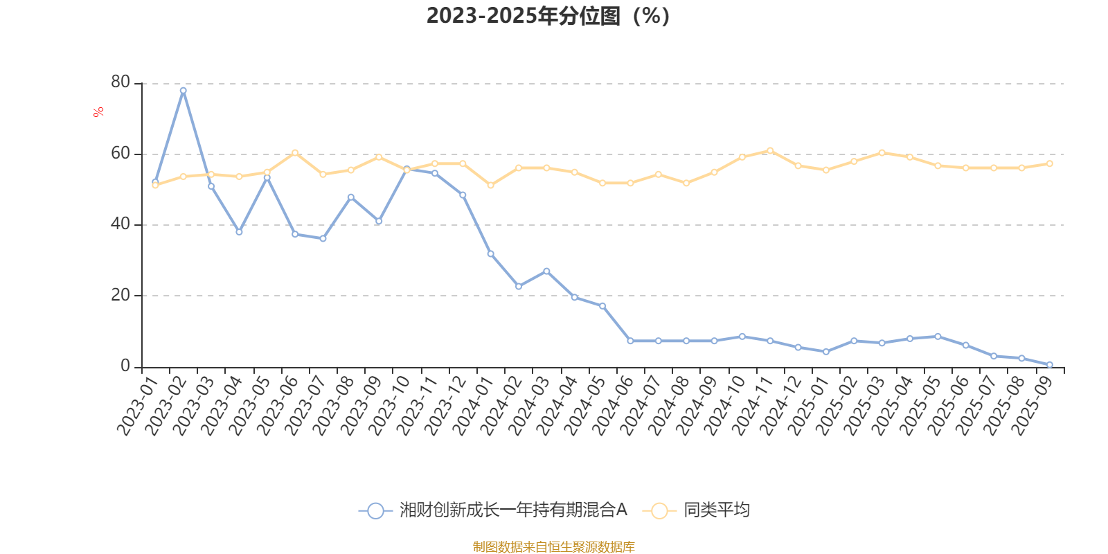 通过所选区间该基金净值增长率分位图,可以观察该基金与同类基金业绩比较情况。图为坐标原点到区间内某时点的净值增长率在同类基金中的分位数。