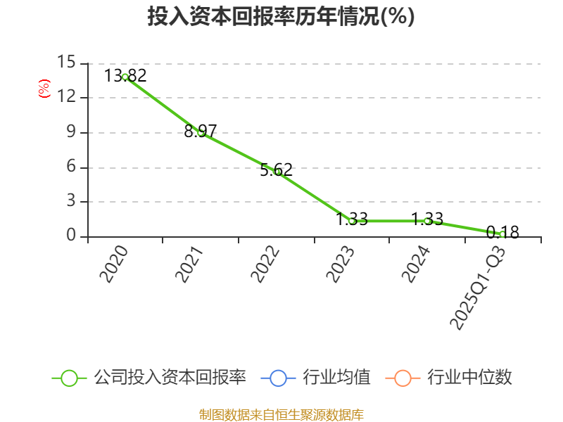 盈利能力方面, 2025年前三季度公司加权平均净资产收益率为0.17%,同比下降1.11个百分点。公司2025年前三季度投入资本回报率为0.18%,较上年同期下降1.01个百分点。