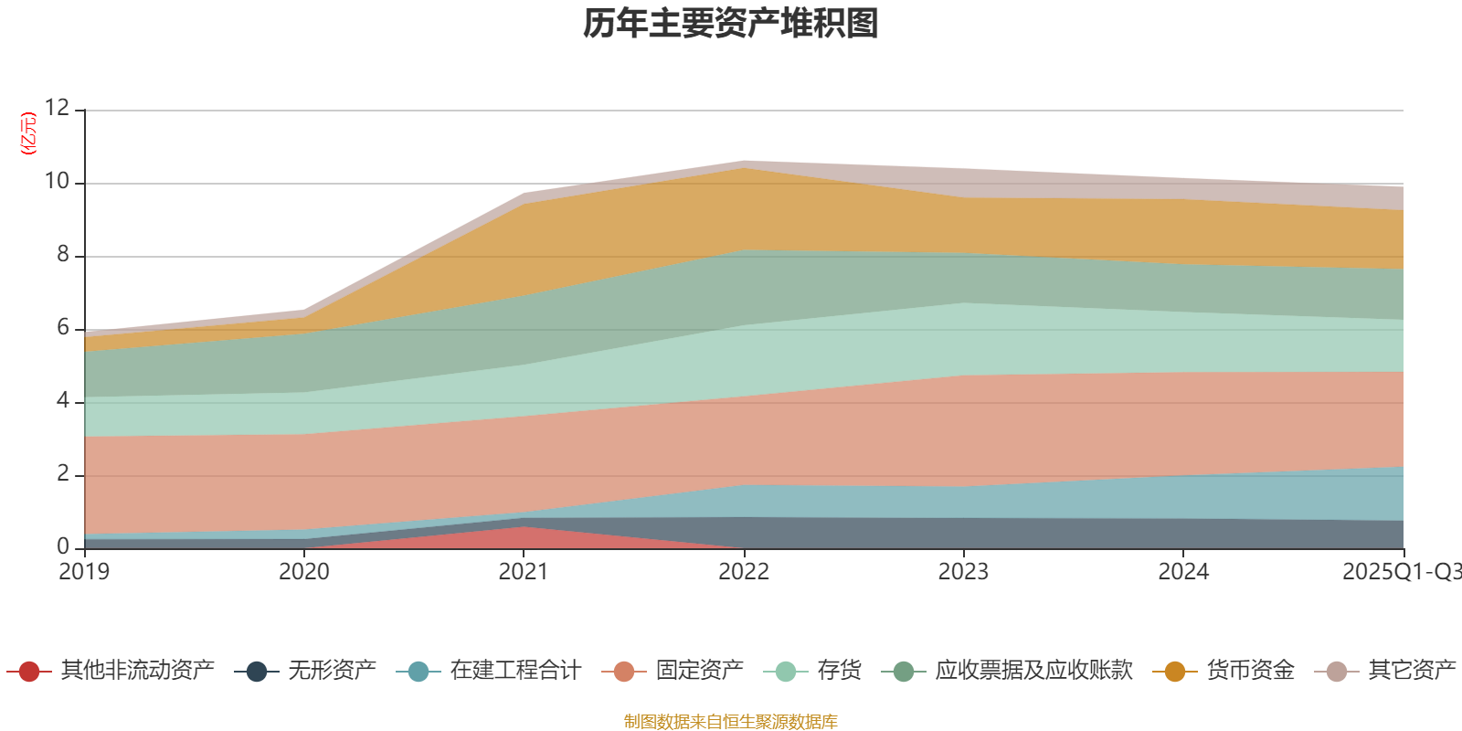 资产重大变化方面,截至2025年三季度末,公司在建工程合计较上年末增加25.23%,占公司总资产比重上升3.29个百分点;存货较上年末减少13.46%,占公司总资产比重下降1.85个百分点;固定资产较上年末减少8.26%,占公司总资产比重下降1.68个百分点;货币资金较上年末减少9.8%,占公司总资产比重下降1.34个百分点。