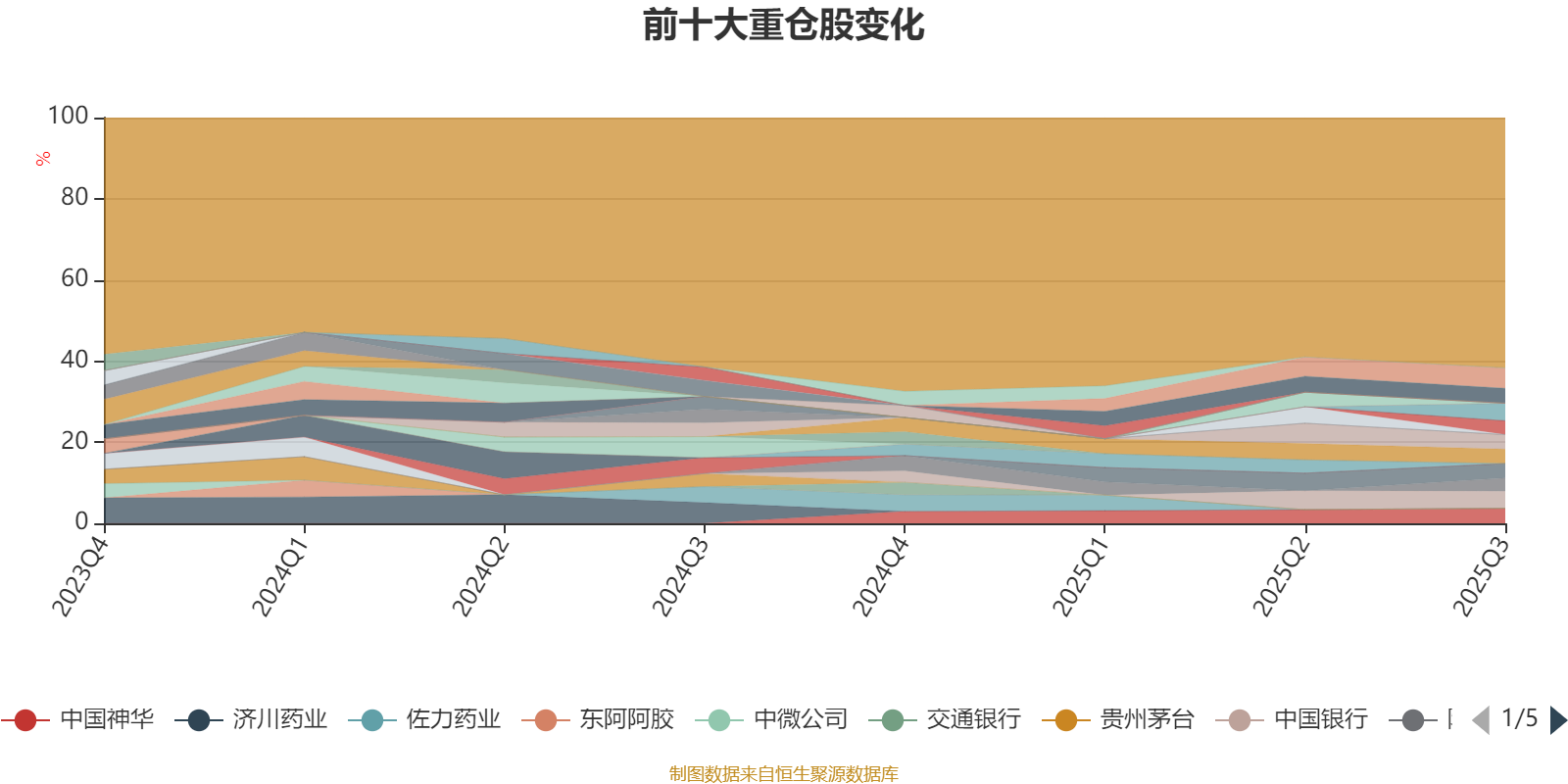 截至2025年三季度末,基金十大重仓股分别是兆易创新、恒瑞医药、中国银行、中国神华、宁波银行、建设银行、科伦药业、中信银行、圣邦股份、陕西煤业。