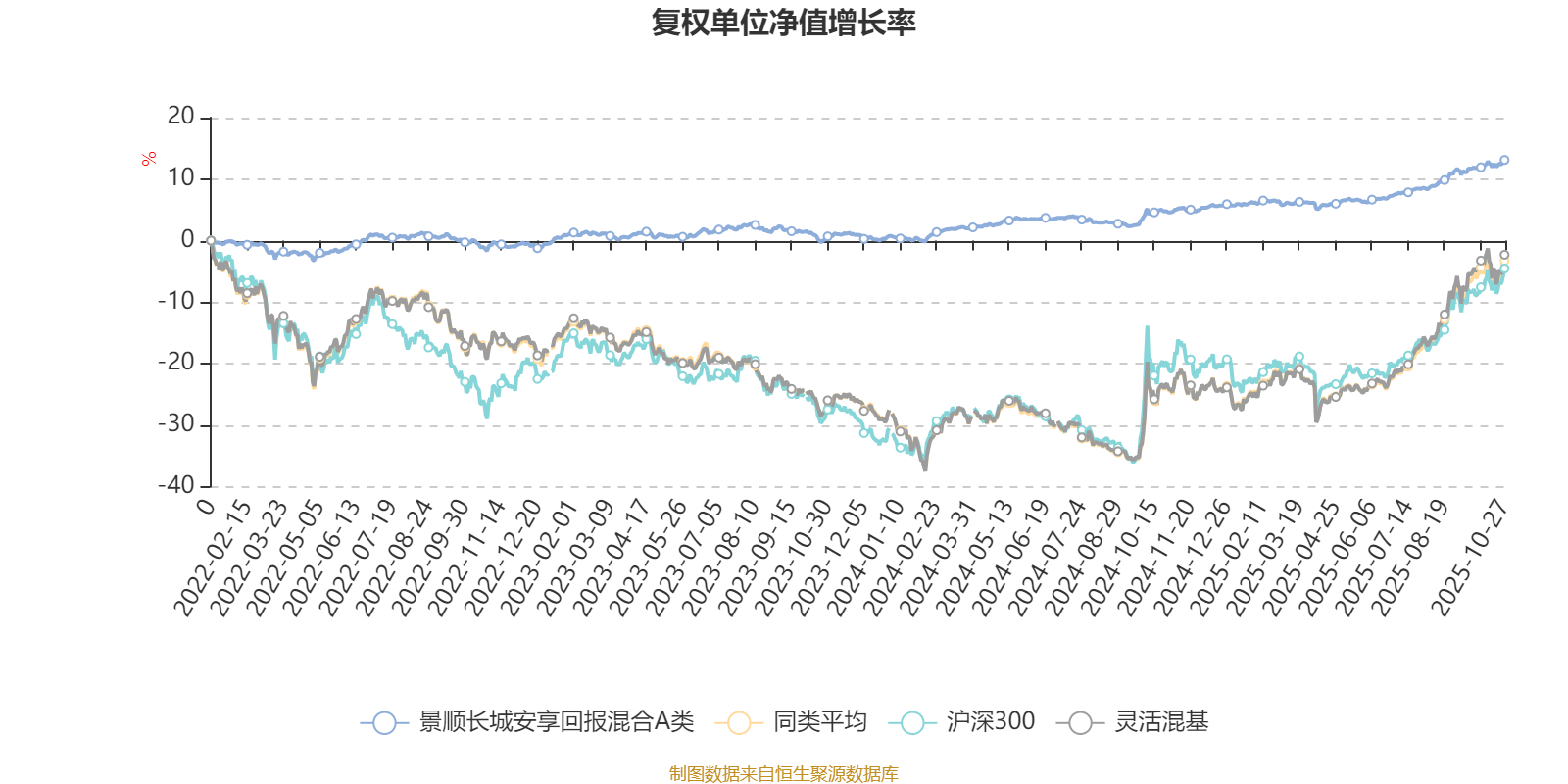 截至10月27日,景顺长城安享回报混合A类近三个月复权单位净值增长率为4.38%,位于同类可比基金978/1287;近半年复权单位净值增长率为6.71%,位于同类可比基金1102/1287;近一年复权单位净值增长率为7.93%,位于同类可比基金1029/1287;近三年复权单位净值增长率为14.45%,位于同类可比基金659/1286。