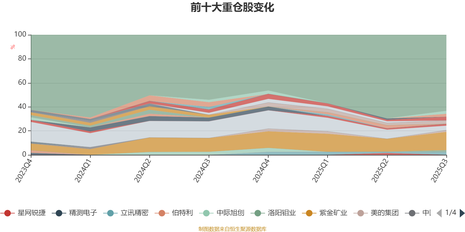 截至2025年三季度末,基金十大重仓股分别是紫金矿业、贵州茅台、沪电股份、寒武纪、工业富联、新易盛、立讯精密、洛阳钼业、宁德时代、美的集团。
