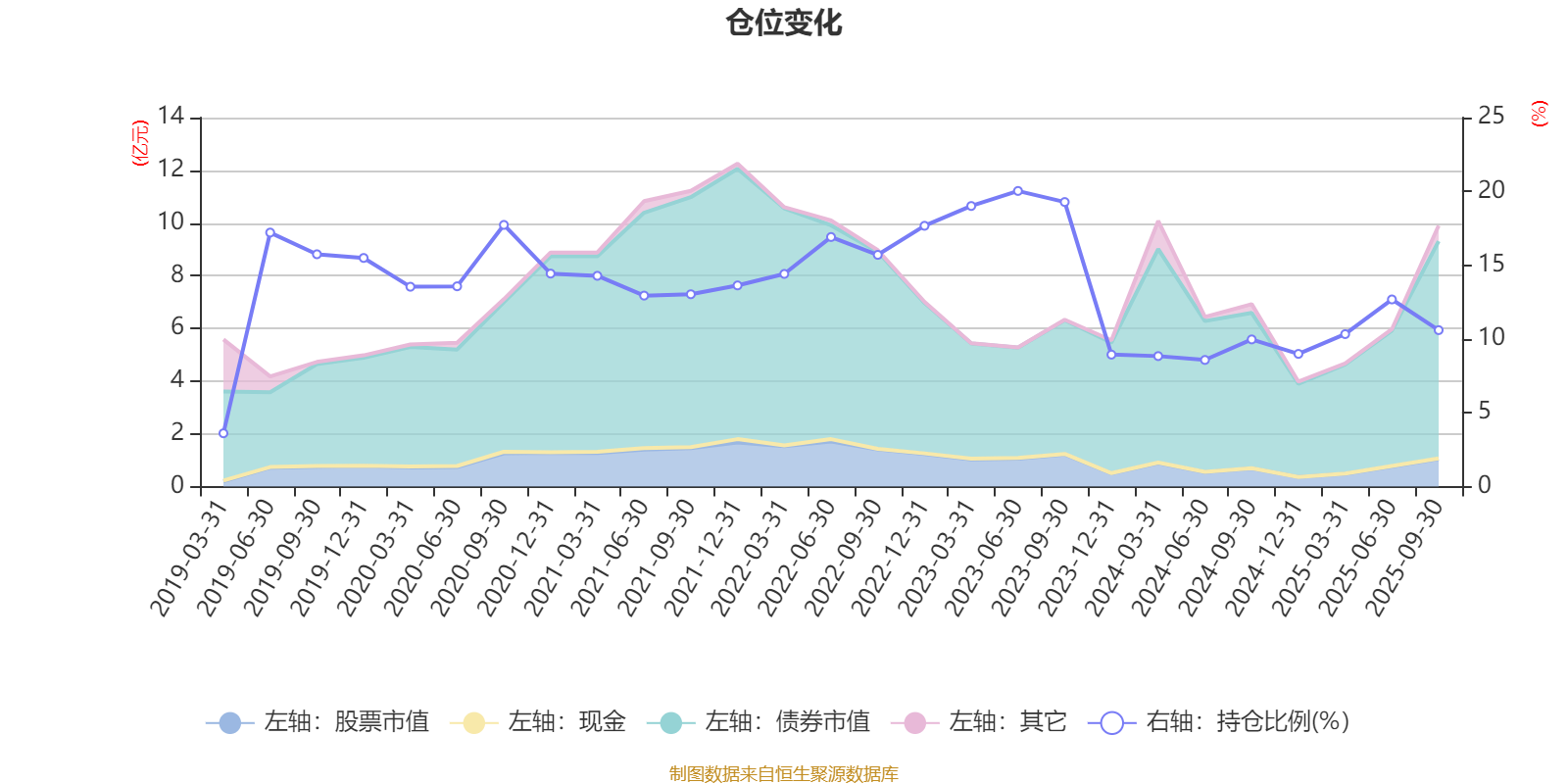 据定期报告数据统计,近三年平均股票仓位为12.91%,同类平均为72.35%。2023年上半年末基金达到20.03%的最高仓位,2019年一季度末最低,为3.61%。