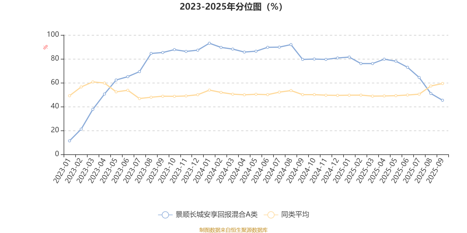 通过所选区间该基金净值增长率分位图,可以观察该基金与同类基金业绩比较情况。图为坐标原点到区间内某时点的净值增长率在同类基金中的分位数。