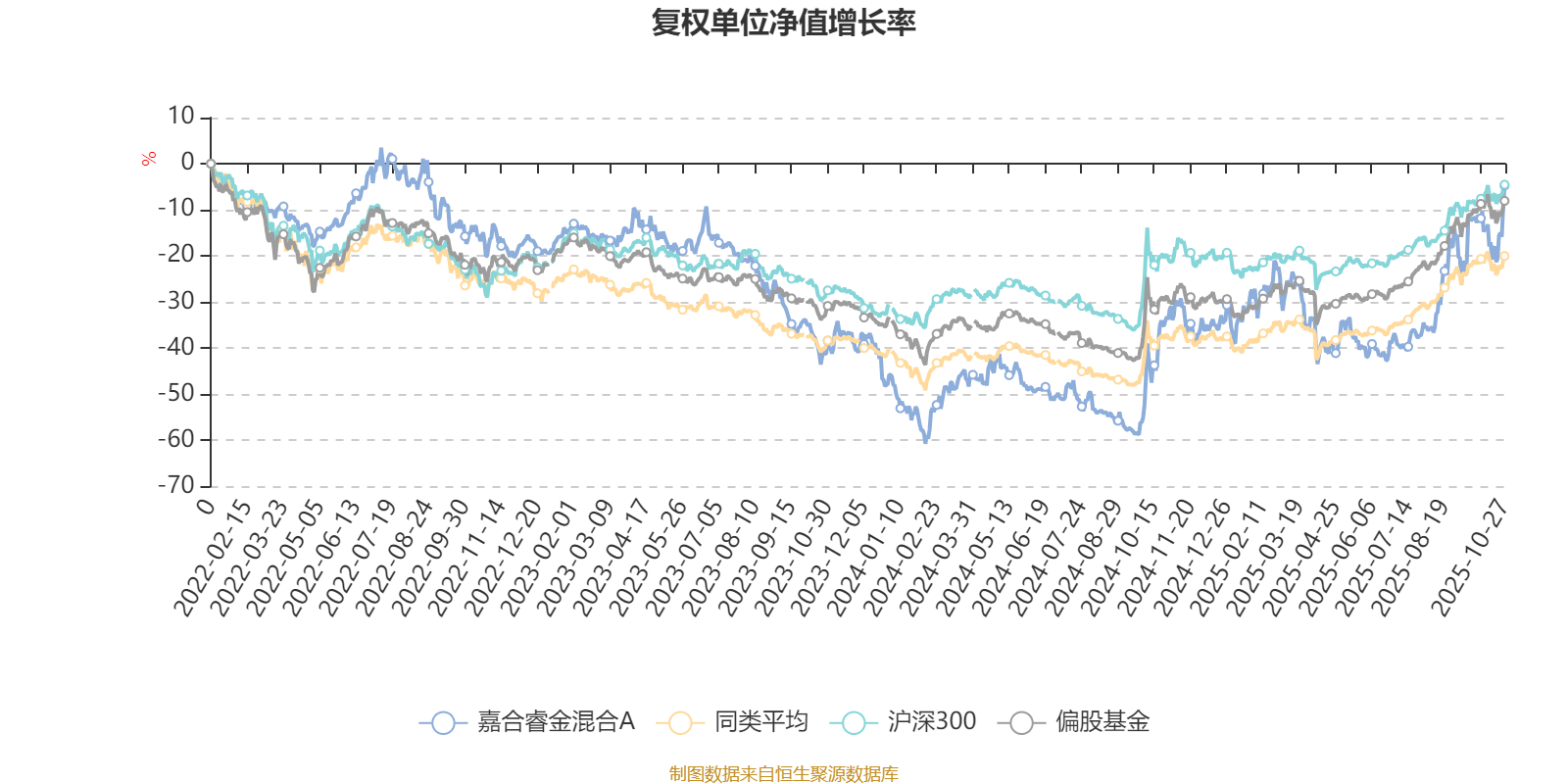 截至10月27日,嘉合睿金混合A近三个月复权单位净值增长率为51.99%,位于同类可比基金16/689;近半年复权单位净值增长率为61.65%,位于同类可比基金41/688;近一年复权单位净值增长率为44.22%,位于同类可比基金124/653;近三年复权单位净值增长率为14.23%,位于同类可比基金178/364。