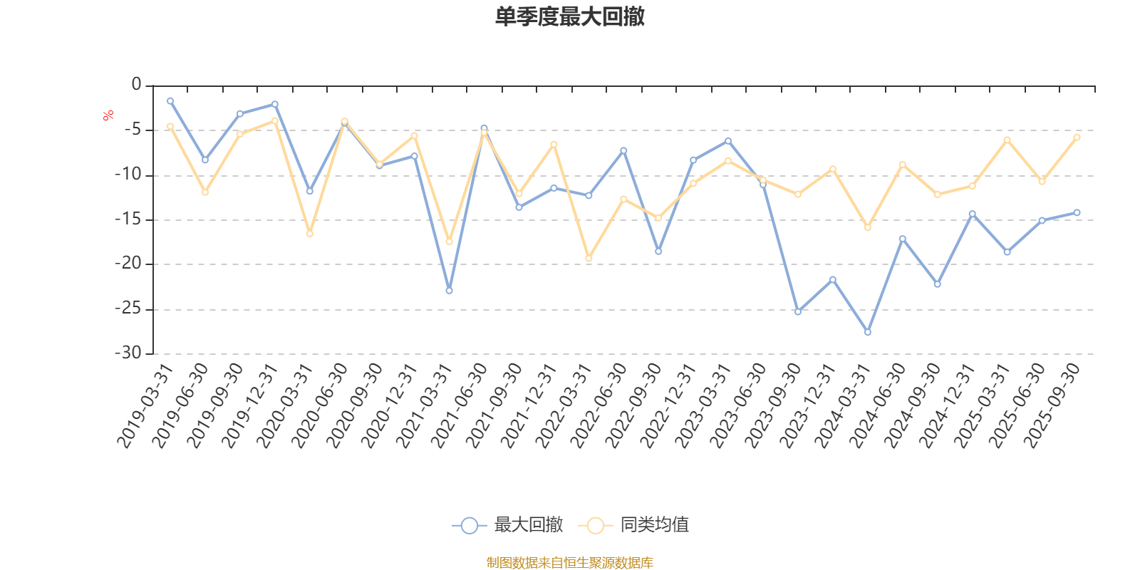 截至10月27日,基金近三年最大回撤为56.7%,同类可比基金排名350/363。单季度最大回撤出现在2024年一季度,为27.58%。