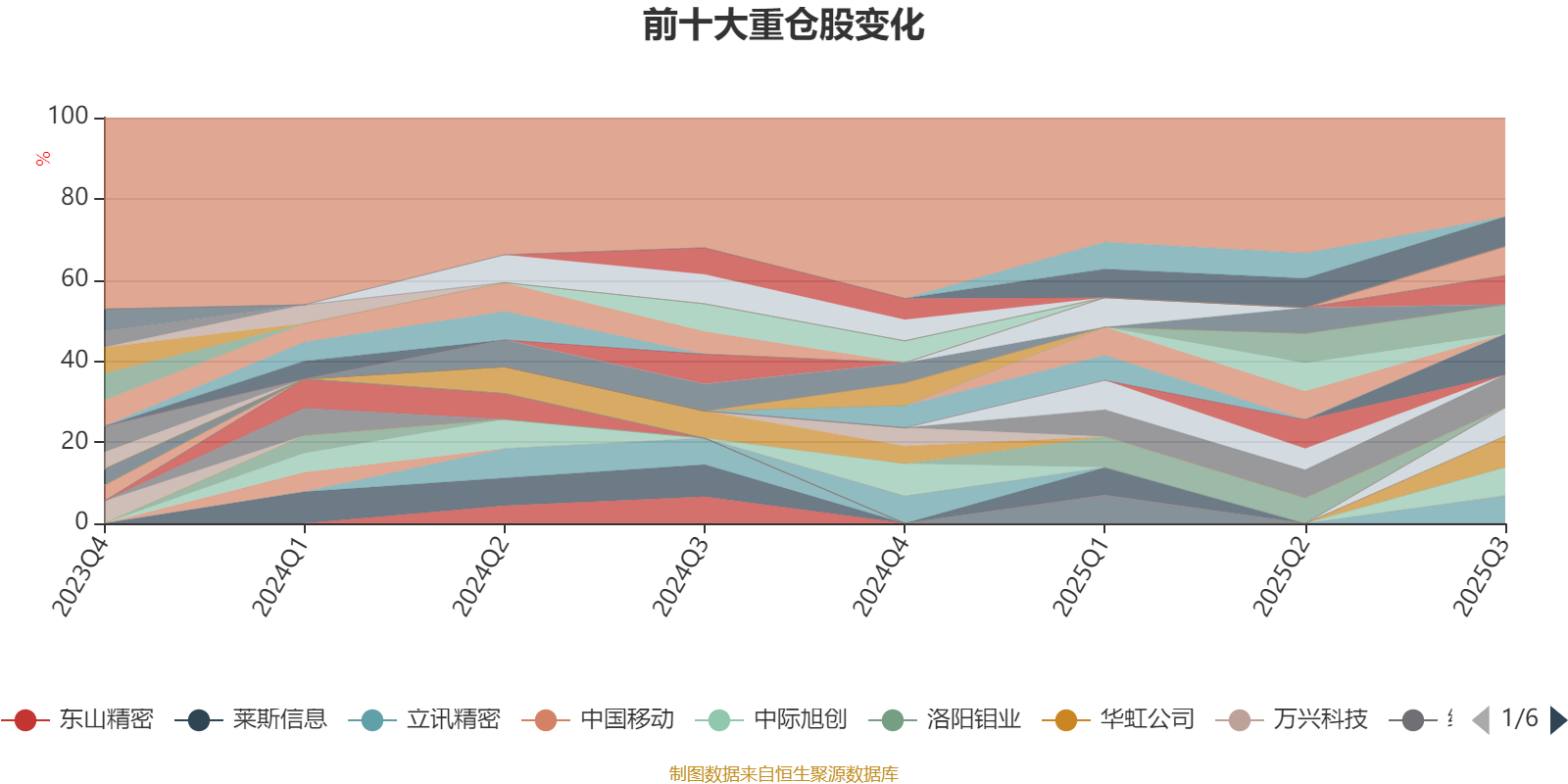 该基金持股集中度较高。截至2025年三季度末,基金十大重仓股分别是寒武纪、科泰电源、华虹公司、潍柴重机、亿田智能、新易盛、胜宏科技、炬光科技、中际旭创、立讯精密。