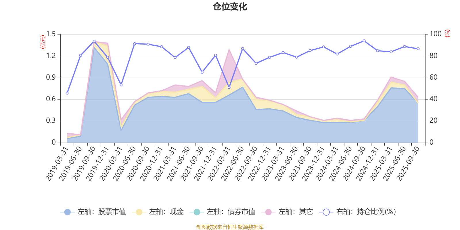 据定期报告数据统计,近三年平均股票仓位为85.41%,同类平均为83.73%。2024年三季度末基金达到94.13%的最高仓位,2019年一季度末最低,为45.83%。