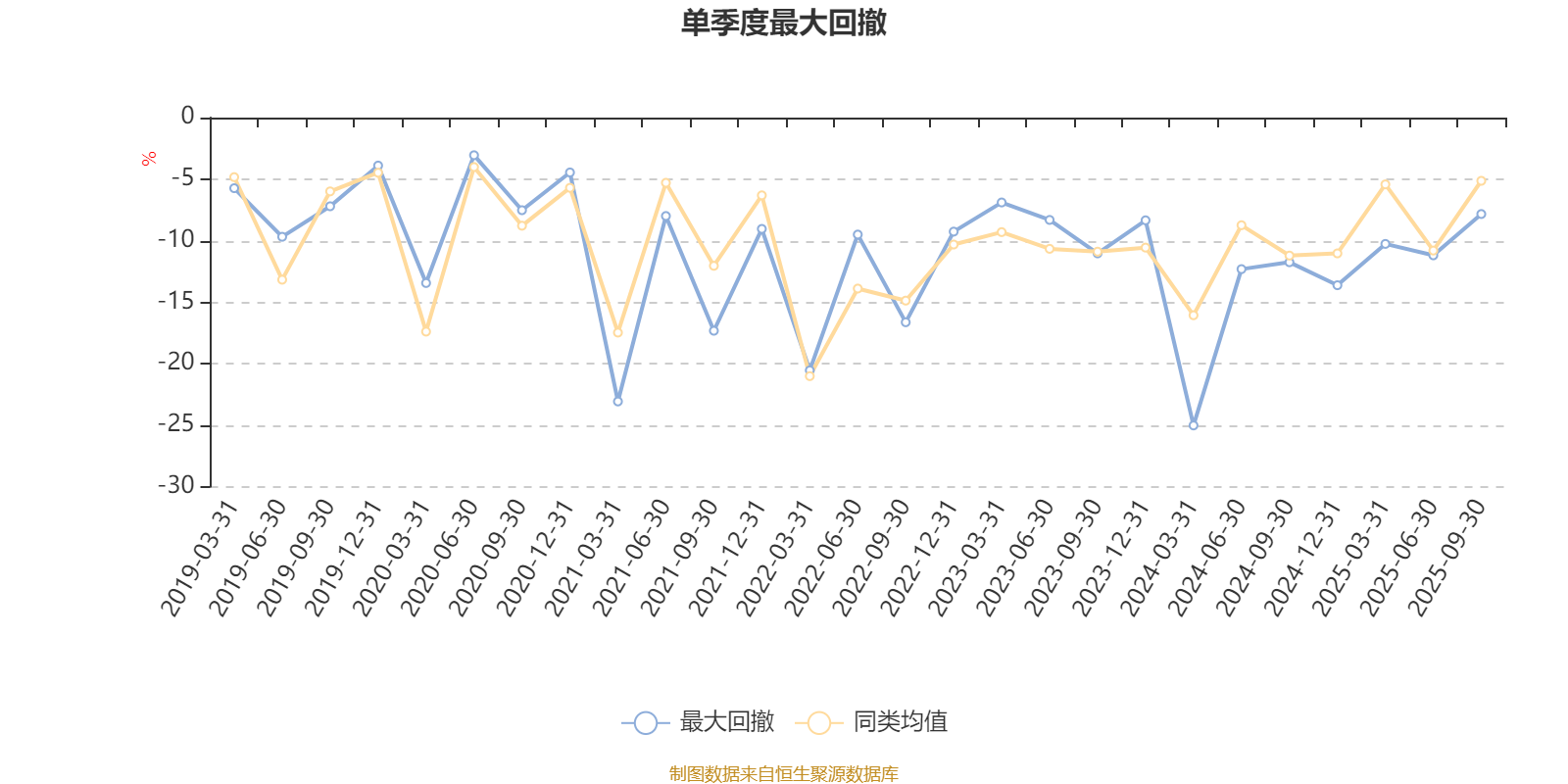 截至10月27日,基金近三年最大回撤为39.16%,同类可比基金排名109/177。单季度最大回撤出现在2024年一季度,为25.03%。