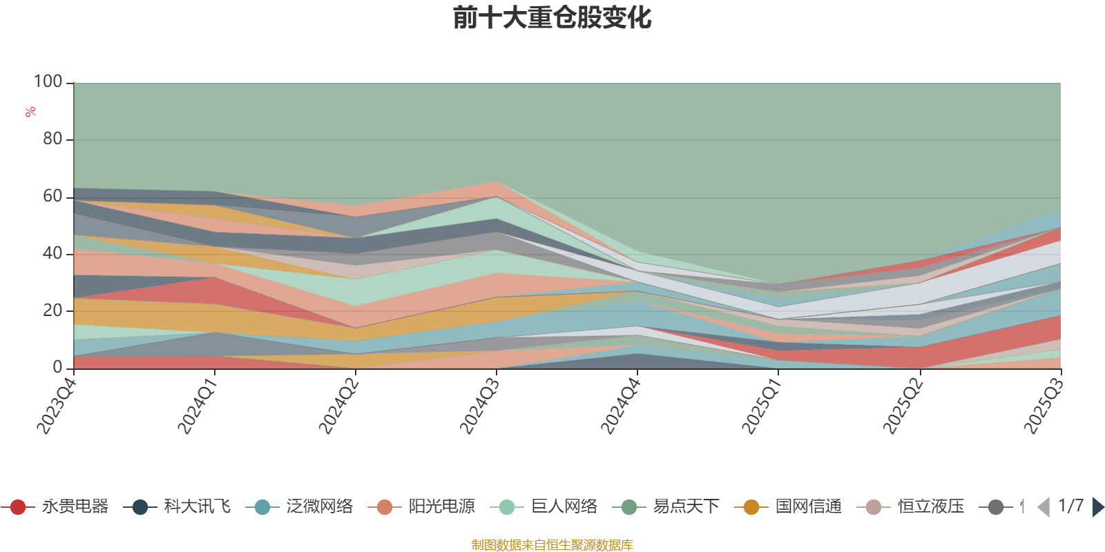 截至2025年三季度末,基金十大重仓股分别是宁德时代、ST华通、恺英网络、华友钴业、寒武纪、海光信息、阳光电源、恒立液压、巨人网络、税友股份。