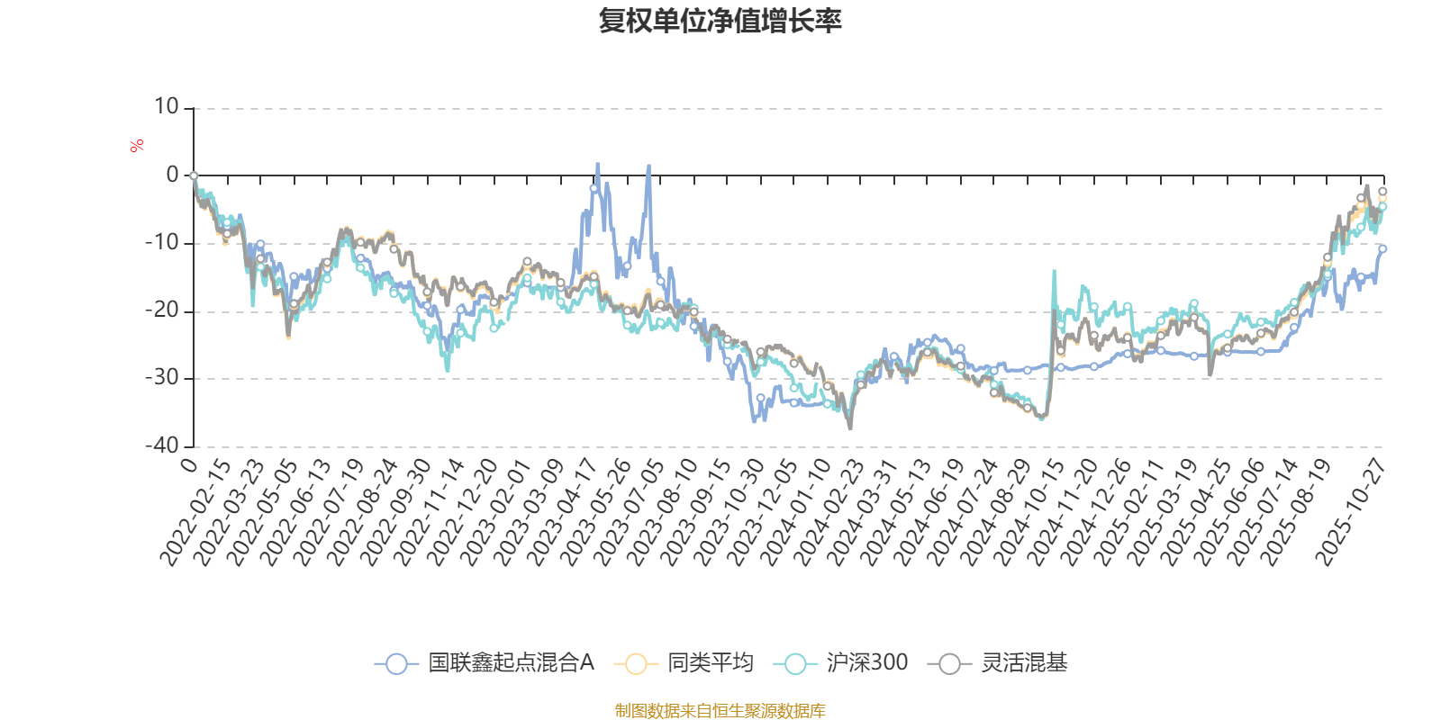 截至10月27日,国联鑫起点混合A近三个月复权单位净值增长率为11.55%,位于同类可比基金678/1287;近半年复权单位净值增长率为20.62%,位于同类可比基金745/1287;近一年复权单位净值增长率为24.88%,位于同类可比基金574/1287;近三年复权单位净值增长率为17.66%,位于同类可比基金579/1286。
