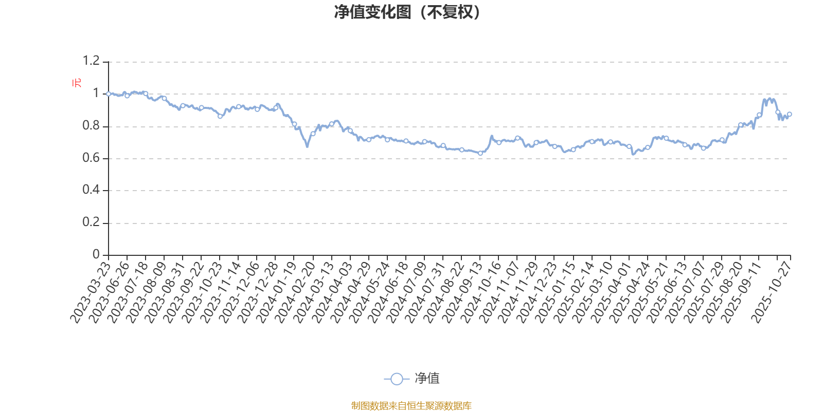 该基金属于偏股混合型基金。截至10月27日,单位净值为0.874元。基金经理是付娟和苗琦。