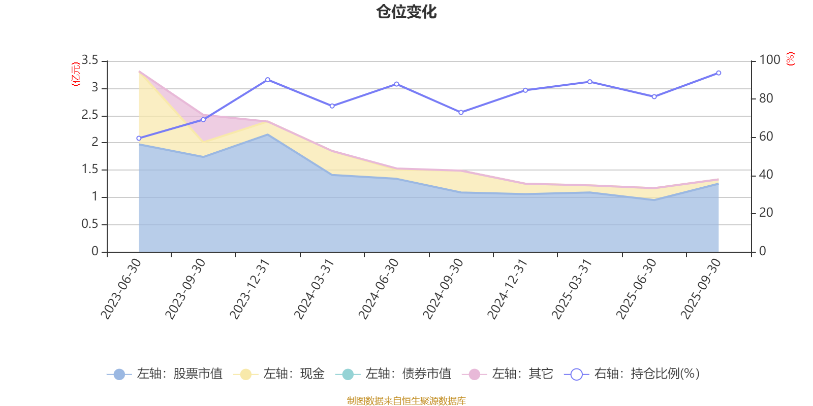 据定期报告数据统计,成立以来平均股票仓位为80.5%,同类平均为83.73%。2025年三季度末基金达到93.71%的最高仓位,2023年上半年末最低,为59.51%。