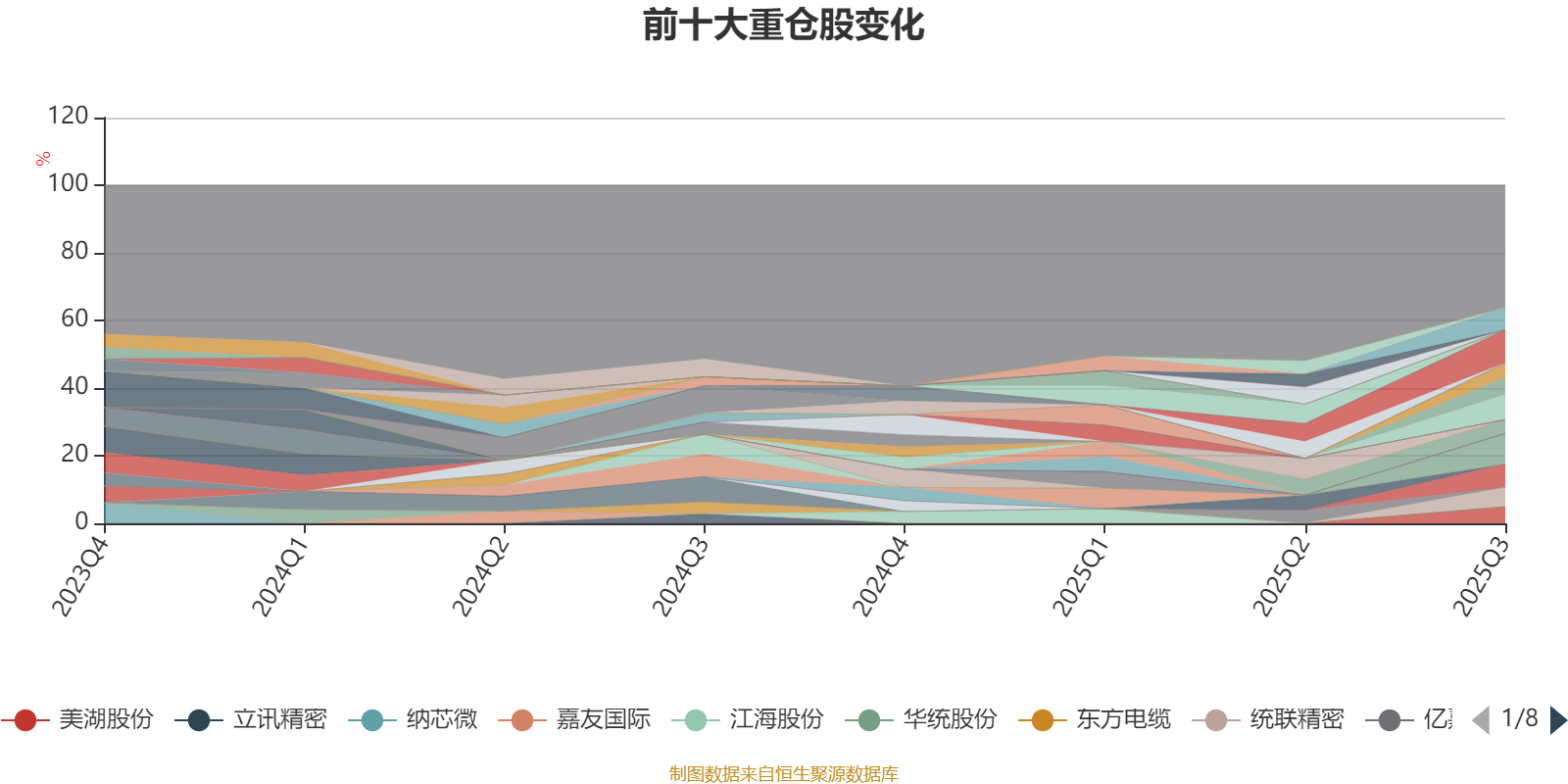 截至2025年三季度末,基金十大重仓股分别是浙江荣泰、科达利、隆盛科技、恒立液压、长源东谷、统联精密、银轮股份、美湖股份、东杰智能、金沃股份。