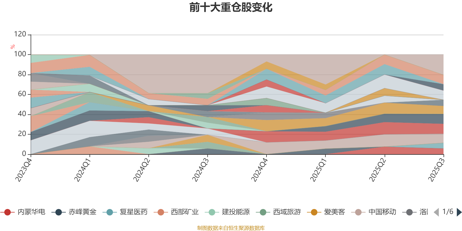 该基金持股集中度较高,近2年前十大重仓股集中度长期超过60%。截至2025年三季度末,基金十大重仓股分别是中国联通、中金黄金、山东黄金、中国电信、中国移动、申能股份、华钰矿业、湖南黄金、内蒙华电、复星医药。
