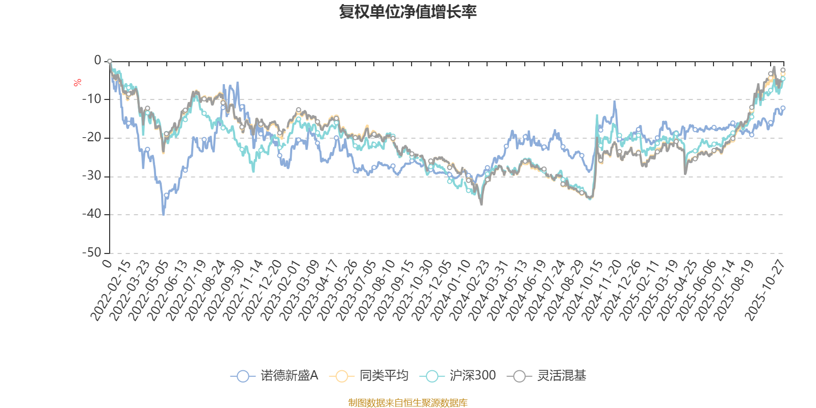 截至10月27日,诺德新盛A近三个月复权单位净值增长率为6.22%,位于同类可比基金894/1287;近半年复权单位净值增长率为6.84%,位于同类可比基金1099/1287;近一年复权单位净值增长率为4.23%,位于同类可比基金1160/1287;近三年复权单位净值增长率为8.50%,位于同类可比基金805/1286。