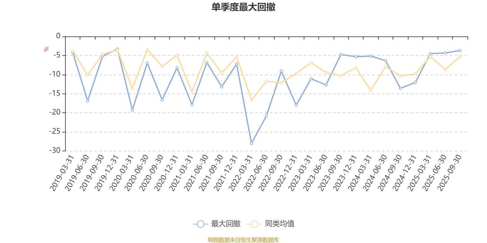 截至10月27日,基金近三年最大回撤为19.23%,同类可比基金排名261/1274。单季度最大回撤出现在2022年一季度,为28.05%。