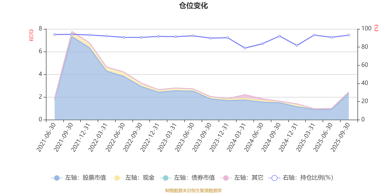 据定期报告数据统计,近三年平均股票仓位为89.16%,同类平均为83.73%。2021年三季度末基金达到94.14%的最高仓位,2024年一季度末最低,为78.95%。