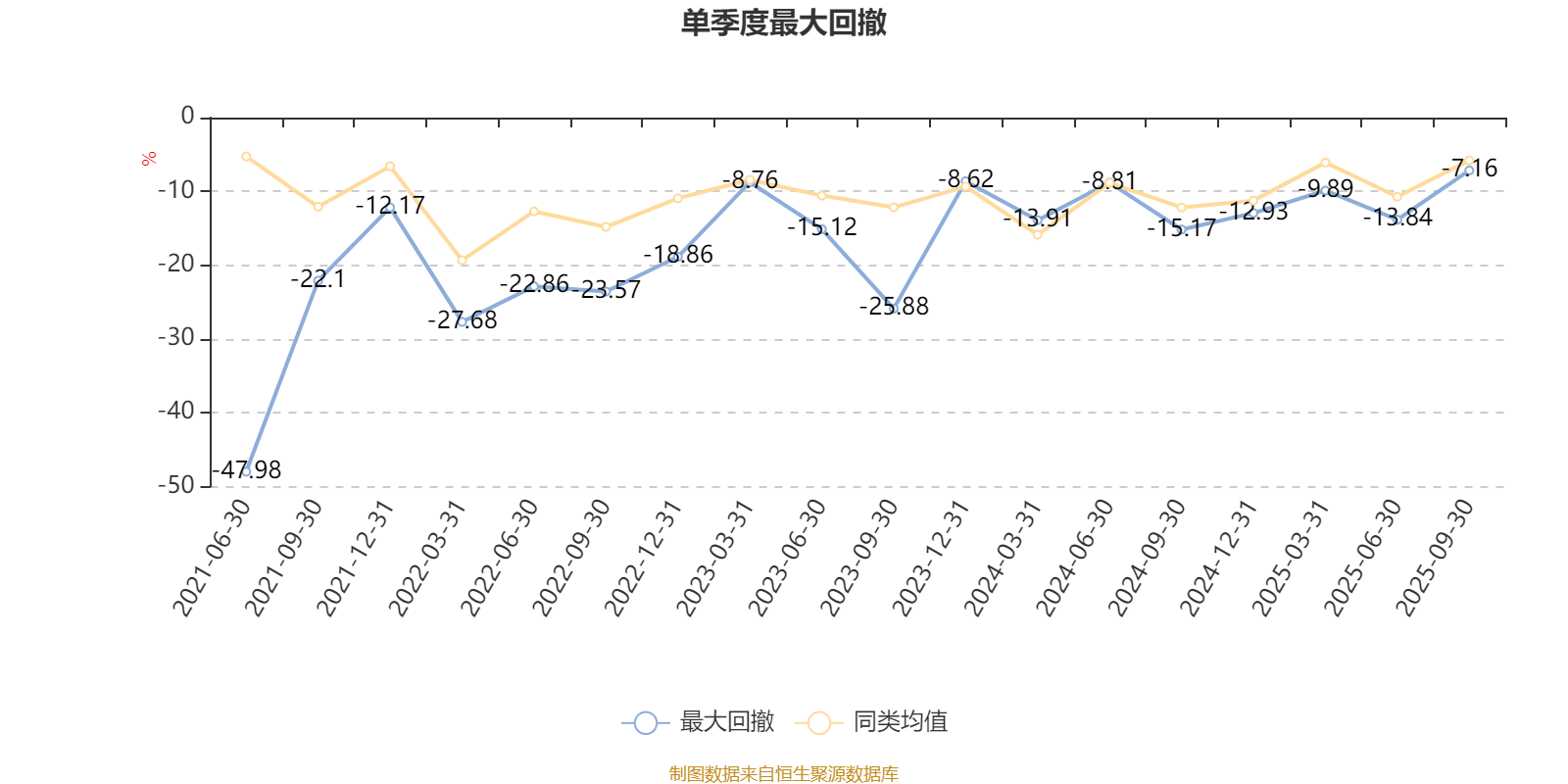 截至10月27日,基金近三年最大回撤为43.81%,同类可比基金排名273/363。单季度最大回撤出现在2021年二季度,为47.98%。