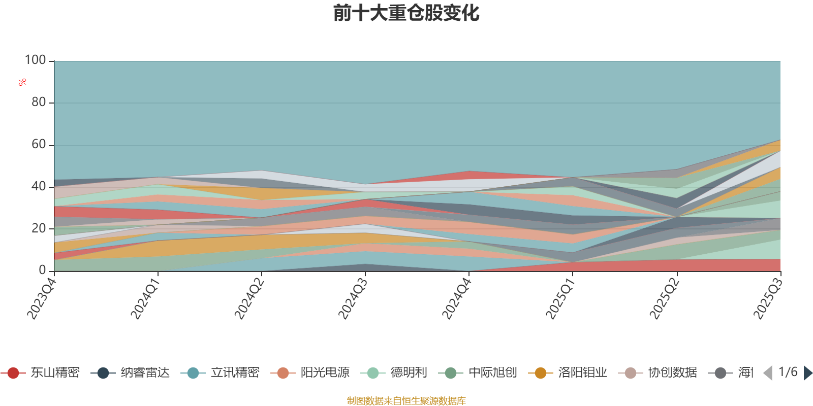 截至2025年三季度末,基金十大重仓股分别是德明利、香农芯创、亿纬锂能、歌尔股份、东山精密、海博思创、沪电股份、蓝思科技、中际旭创、中微公司。