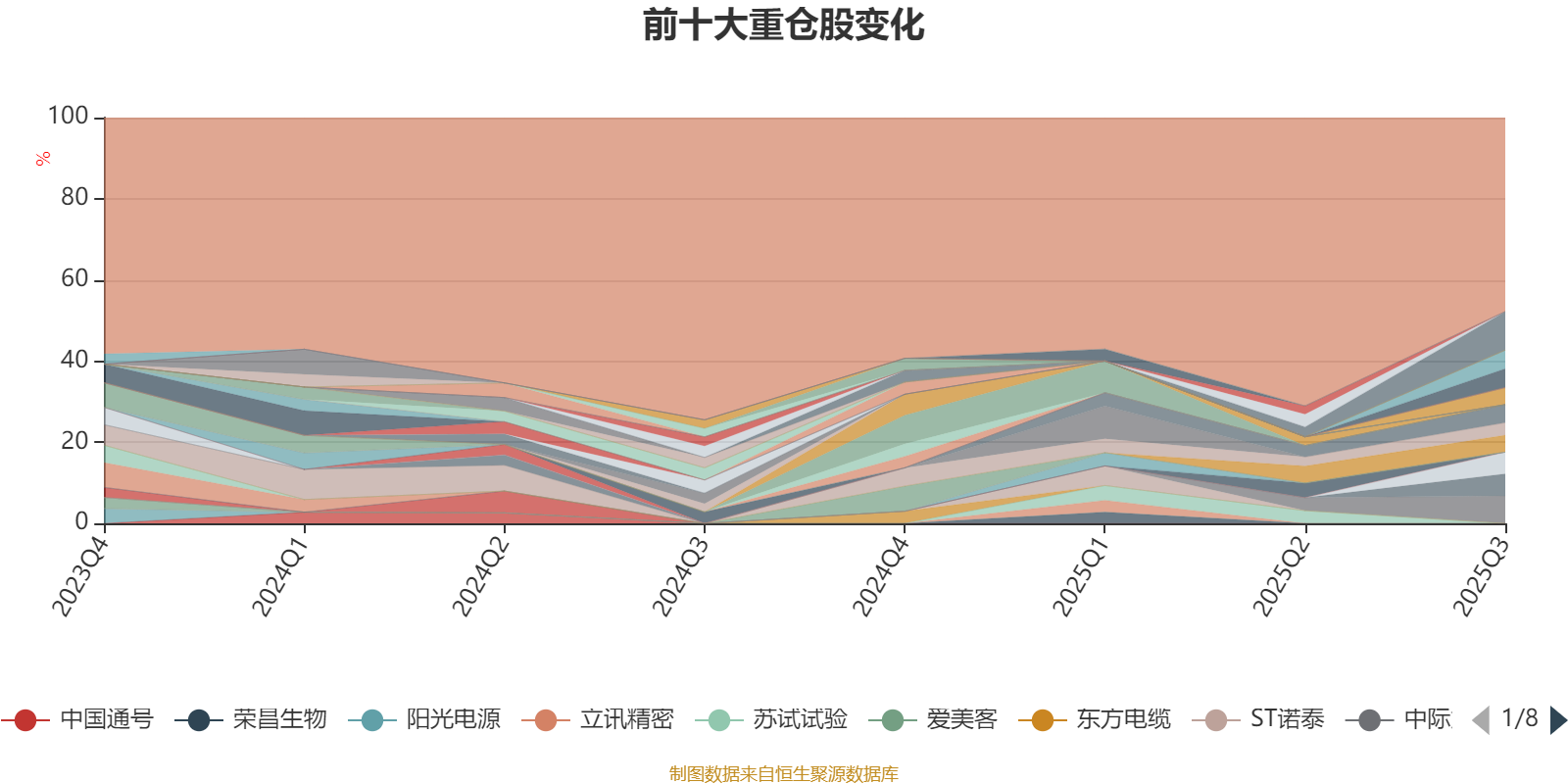 截至2025年三季度末,基金十大重仓股分别是新易盛、中际旭创、中材科技、洛阳钼业、沪电股份、工业富联、大金重工、英科医疗、ST华通、贵州茅台。