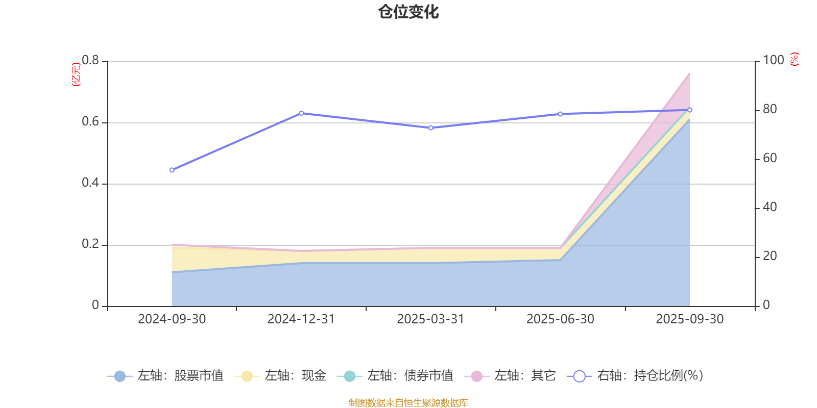 据定期报告数据统计,成立以来平均股票仓位为73.12%,同类平均为87.09%。2025年三季度末基金达到80.08%的最高仓位,2024年三季度末最低,为55.55%。