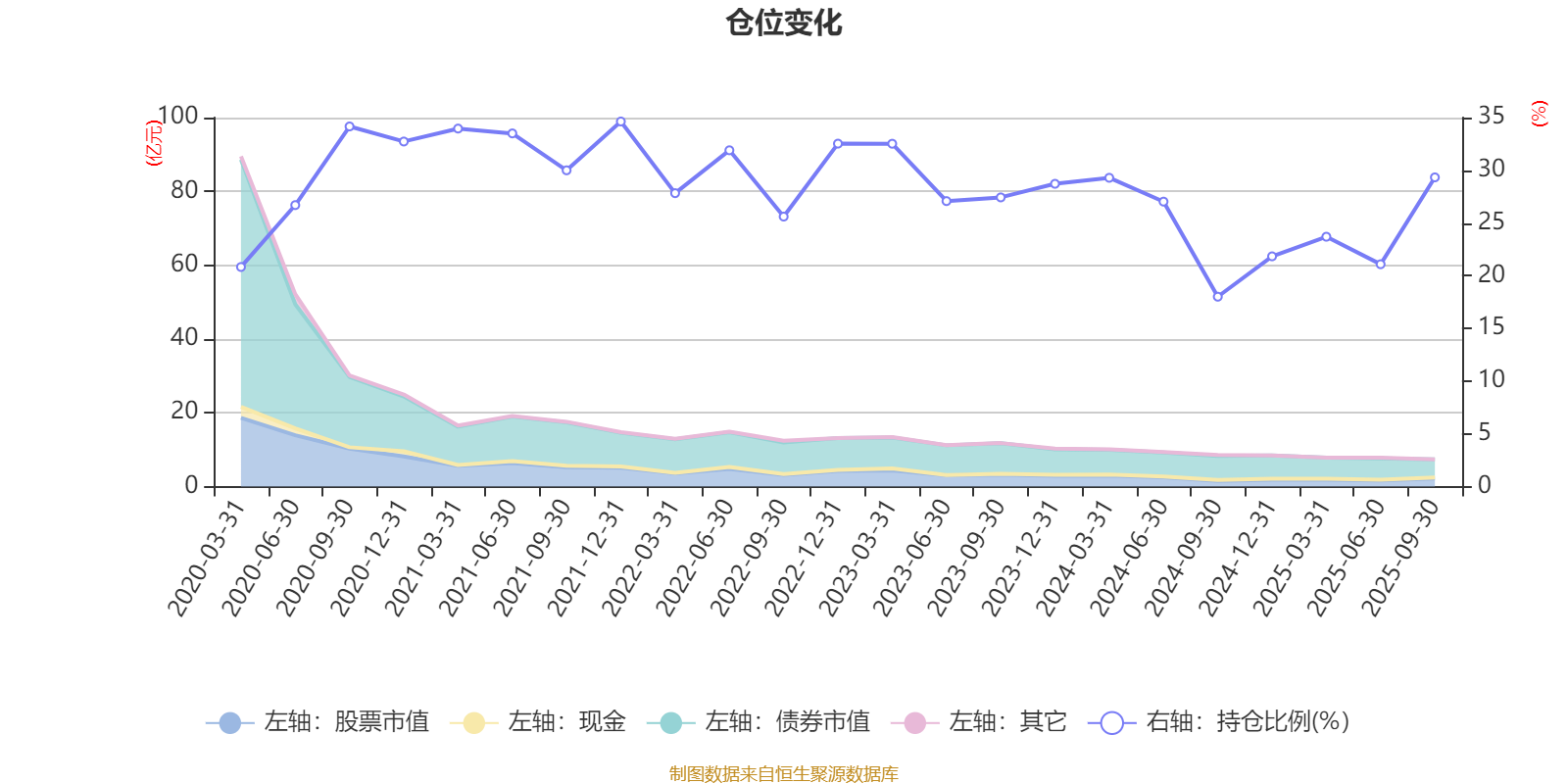 据定期报告数据统计,近三年平均股票仓位为26.55%,同类平均为19.14%。2021年末基金达到34.63%的最高仓位,2024年三季度末最低,为18.01%。