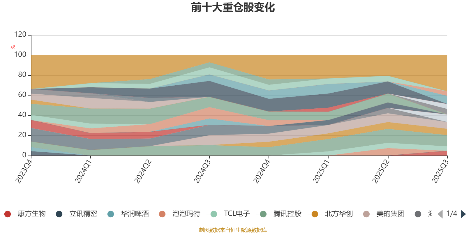 该基金持股集中度较高,近2年前十大重仓股集中度长期超过60%。截至2025年三季度末,基金十大重仓股分别是腾讯控股、阿里巴巴-W、ST华通、美的集团、北方华创、恒瑞医药、众鑫股份、康方生物、涛涛车业、TCL电子。