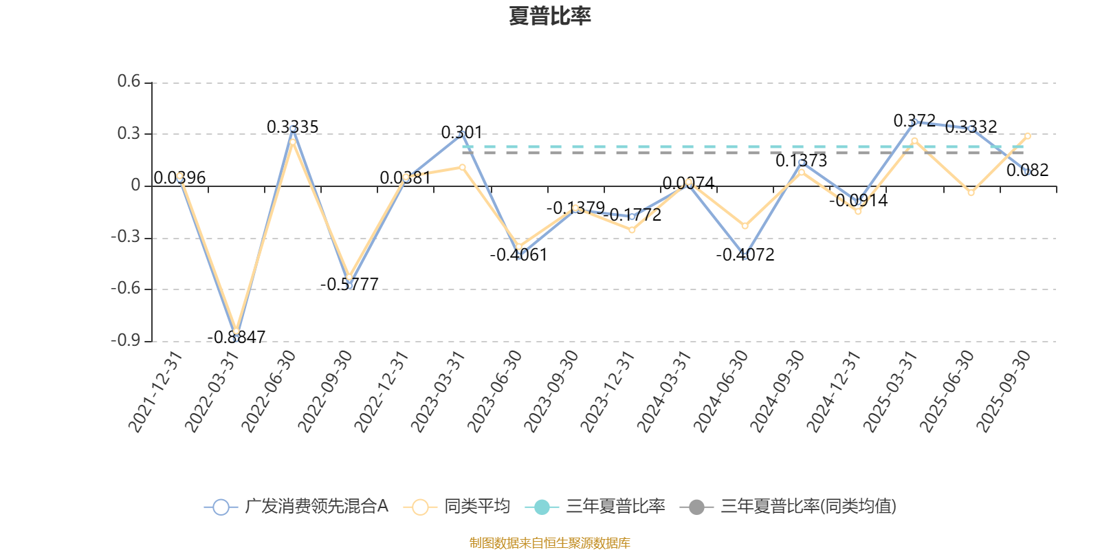 截至9月30日,基金近三年夏普比率为0.2278,位于同类可比基金33/74。