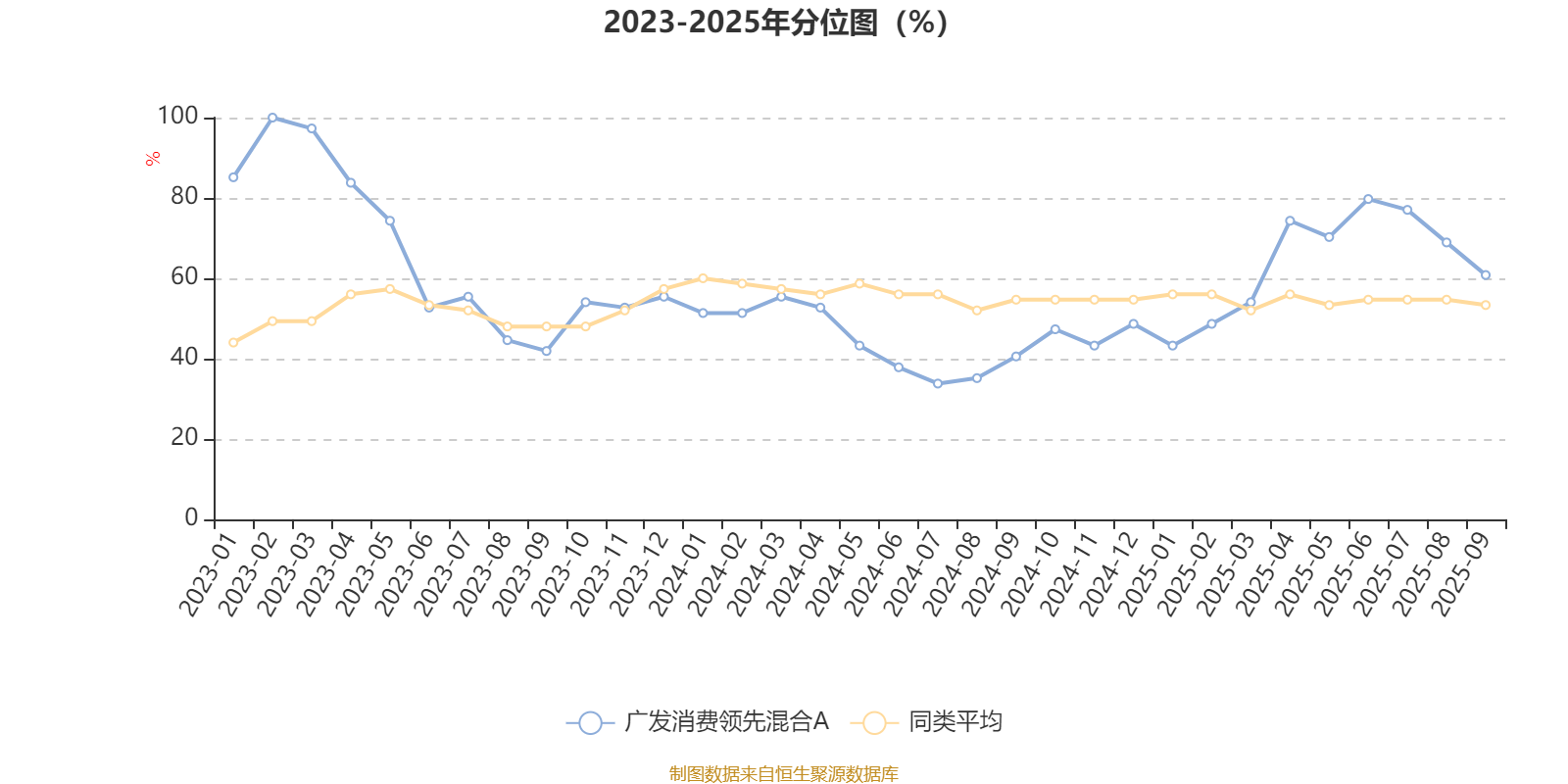 通过所选区间该基金净值增长率分位图,可以观察该基金与同类基金业绩比较情况。图为坐标原点到区间内某时点的净值增长率在同类基金中的分位数。