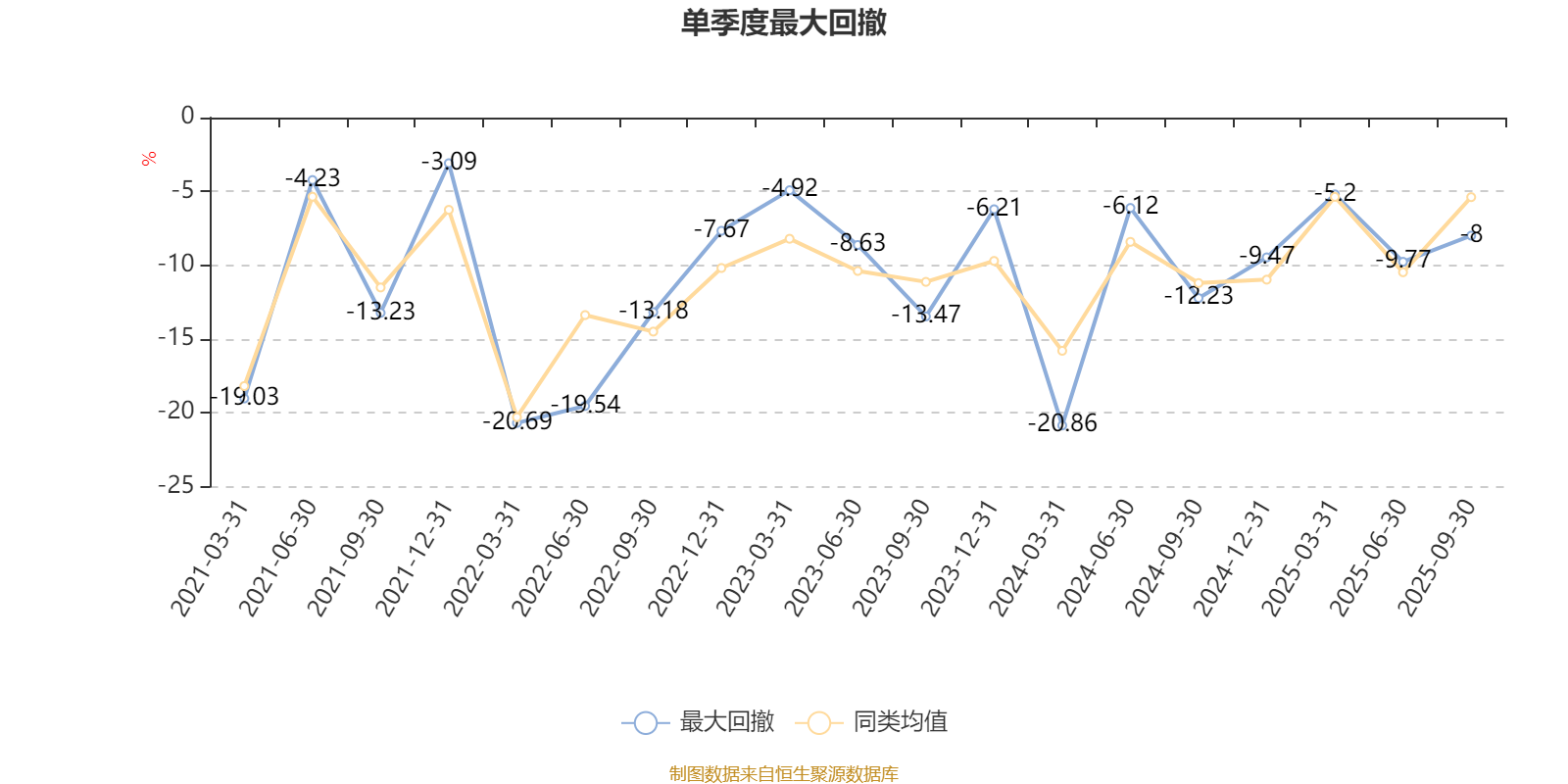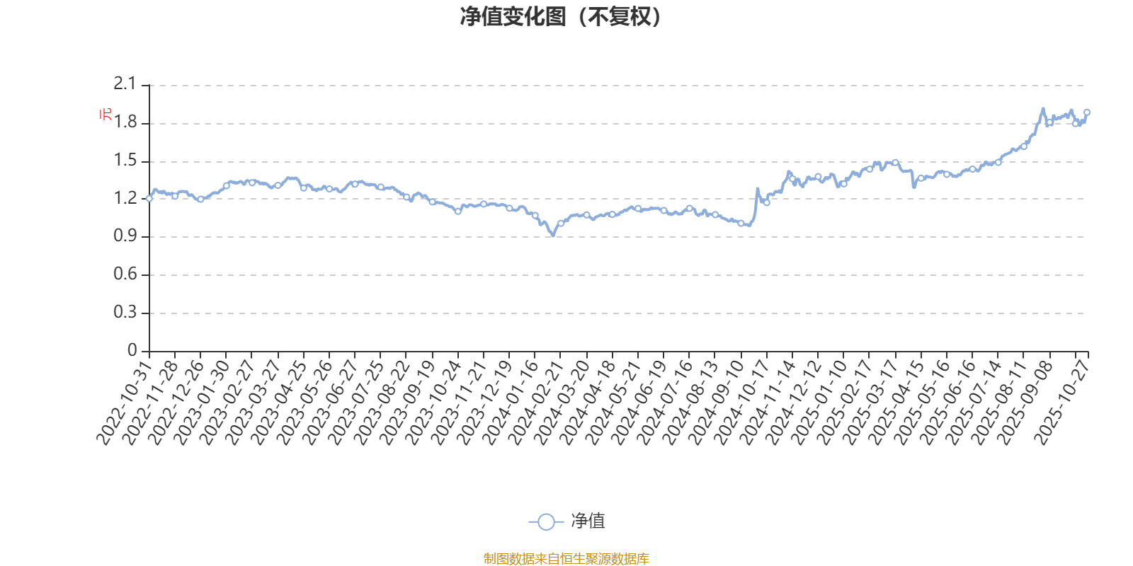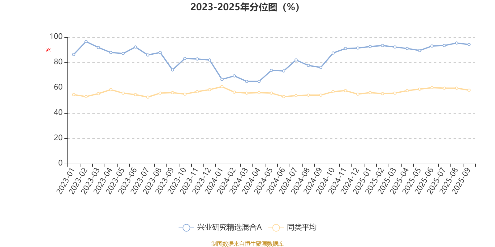 通过所选区间该基金净值增长率分位图,可以观察该基金与同类基金业绩比较情况。图为坐标原点到区间内某时点的净值增长率在同类基金中的分位数。
