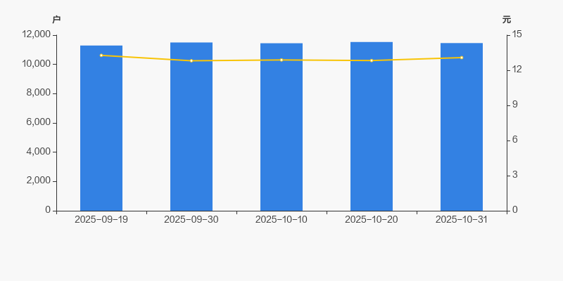 截至2025年10月31日,公司最新流通股本为1.82亿股。户均持有流通股数量由上期的1.58万股上升至1.59万股,户均流通市值20.77万元。