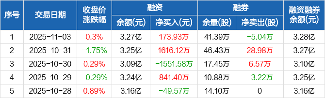 广州港融资融券信息显示,2025年11月3日融资净买入173.93万元;融资余额3.27亿元,创历史新高,较前一日增加0.54%
