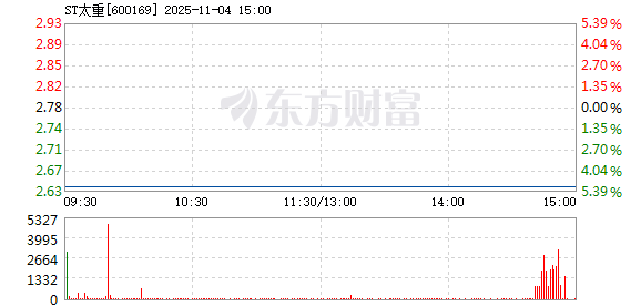 以下是ST太重在北京时间11月4日09:26分盘口异动快照:11月4日9点26分,