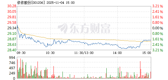 依依股份盘中快速回调,5分钟内跌幅超过2%,截至9点35分,报28.85元,成交1051.07万元,换手率0.34%。