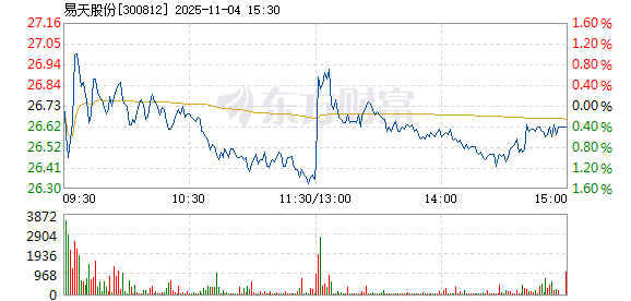 易天股份盘中快速反弹,5分钟内涨幅超过2%,截至9点36分,报27.01元,成交4238.02万元,换手率1.71%。