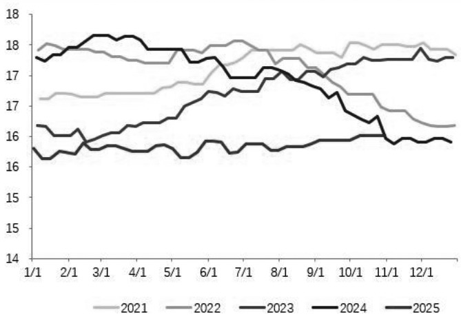 图为日熔量季节性(单位:万吨)