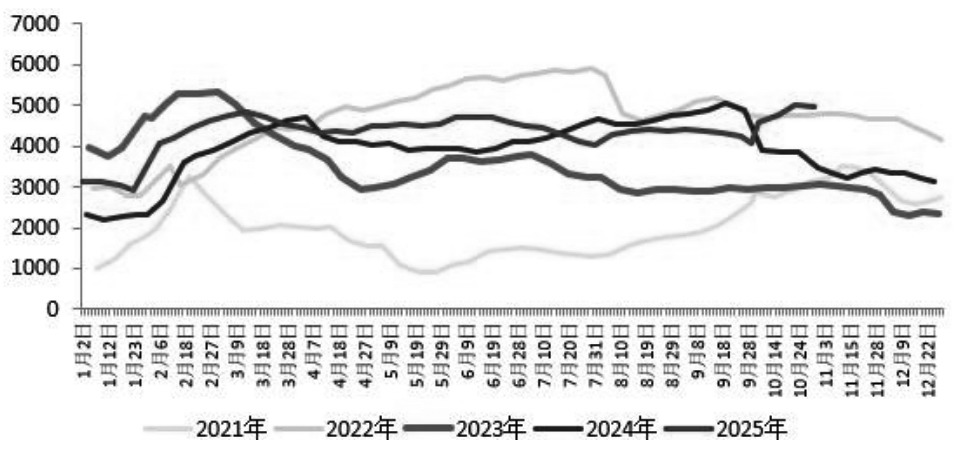 “十一”长假期间中下游企业多数放假,而玻璃产线延续生产,阶段性供需错配导致厂库库存从节前的5935万重箱激增349万重箱,至6282.4万重箱。截至10月底,浮法玻璃样本总库存6579万重箱,同比增幅达28.85%,库存天数增至28天,高库存成为压制期价的直接因素。此外,下游需求持续低迷,房地产市场虽在长假期间表现出短期回暖的迹象,但核心城市以外的需求回升缺乏持续性。房地产行业筑底周期的持续导致玻璃全国深加工样本企业订单表现不理想,订单天数均值为10.8天,同比降16.1%,部分企业反馈其处于无单状态。供需过剩、成本端走弱等多重原因共同驱动玻璃期价承压下行。