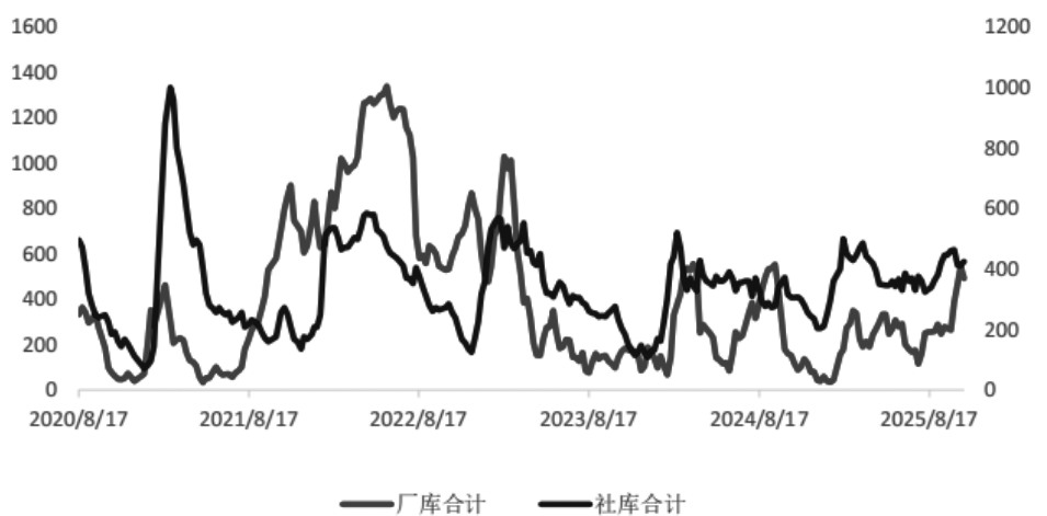 上周随着玻璃现货降价刺激、需求回暖,日产销率明显改善。企业为缓解自身库存压力,现货接连降价,沙河地区大板成交均价从10月初的1220元/吨左右一路跌至当前的1113元/吨,湖北地区报价从节前1160~1230元/吨跌至1040~1110元/吨,整体现货价格下跌超过100元/吨。低价刺激了中下游拿货,近期走货明显转好,期现商开始补库,带动玻璃产销大幅好转,多地产销破百。现货市场的边际改善打破了“高库存、价格下跌、需求观望”的负反馈循环,为期价反弹提供了基本面支撑。因此,前期短暂的盘面反弹主要由现货降价刺激下带来的需求回暖,进而产销走强拉动盘面上涨。此外,政策预期升温与技术面修复形成共振,10月20日国家统计局数据显示,房地产新开工、竣工降幅收窄,叠加市场对四季度赶工需求的预期增强,市场情绪形成反转,玻璃期货2601合约上周一持仓量增至181万手,多空博弈加剧,后几日空头减仓价格上行。