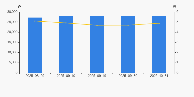 截至2025年10月31日,公司最新总股本为5.47亿股,其中流通股本为5.44亿股。户均持有流通股数量由上期的1.93万股上升至1.95万股,户均流通市值9.54万元。